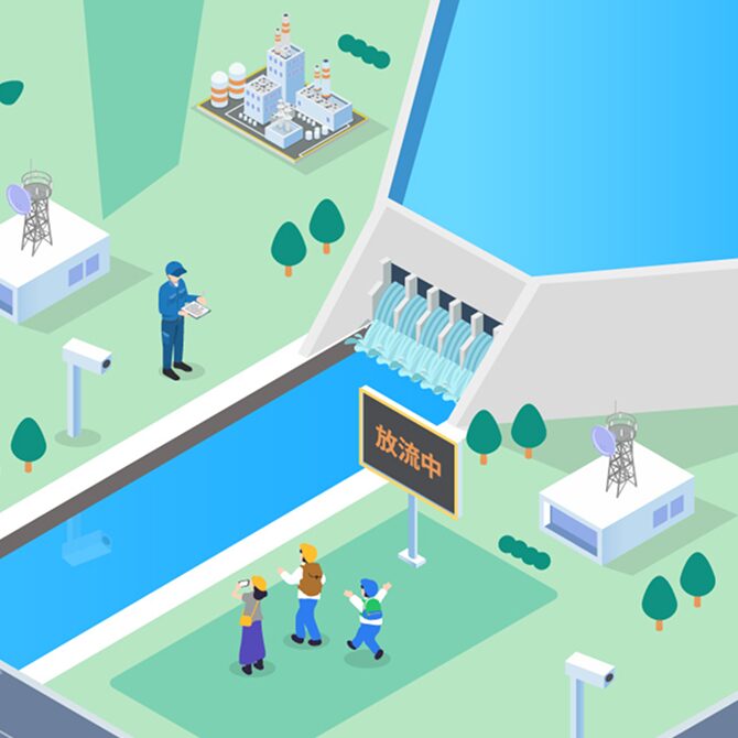 ダムや堰では、雨量や水位を自動チェックするシステムが導入されています。ゲートの開閉や放流量を計算し、必要に応じて警報や報告を行うことで、河川の氾濫を防いでいます。