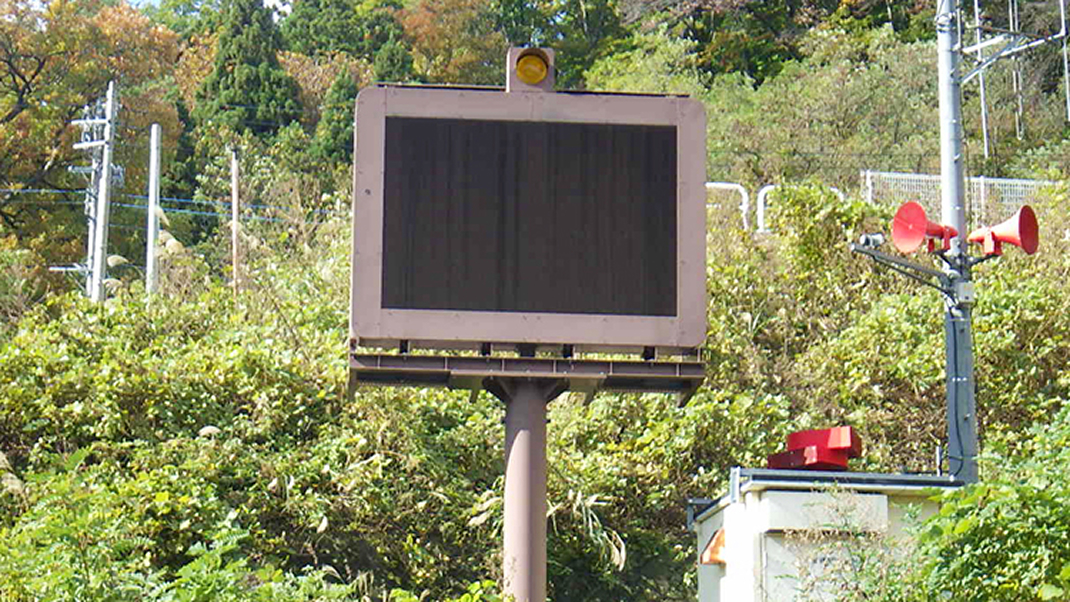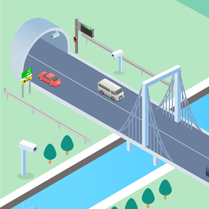 トンネル内で事故や火災が起きた際、利用者へ危険を知らせる表示板を設置。LEDで見やすく表示し、関係各所へも情報を伝えることで、迅速な対応と安全確保に貢献しています。