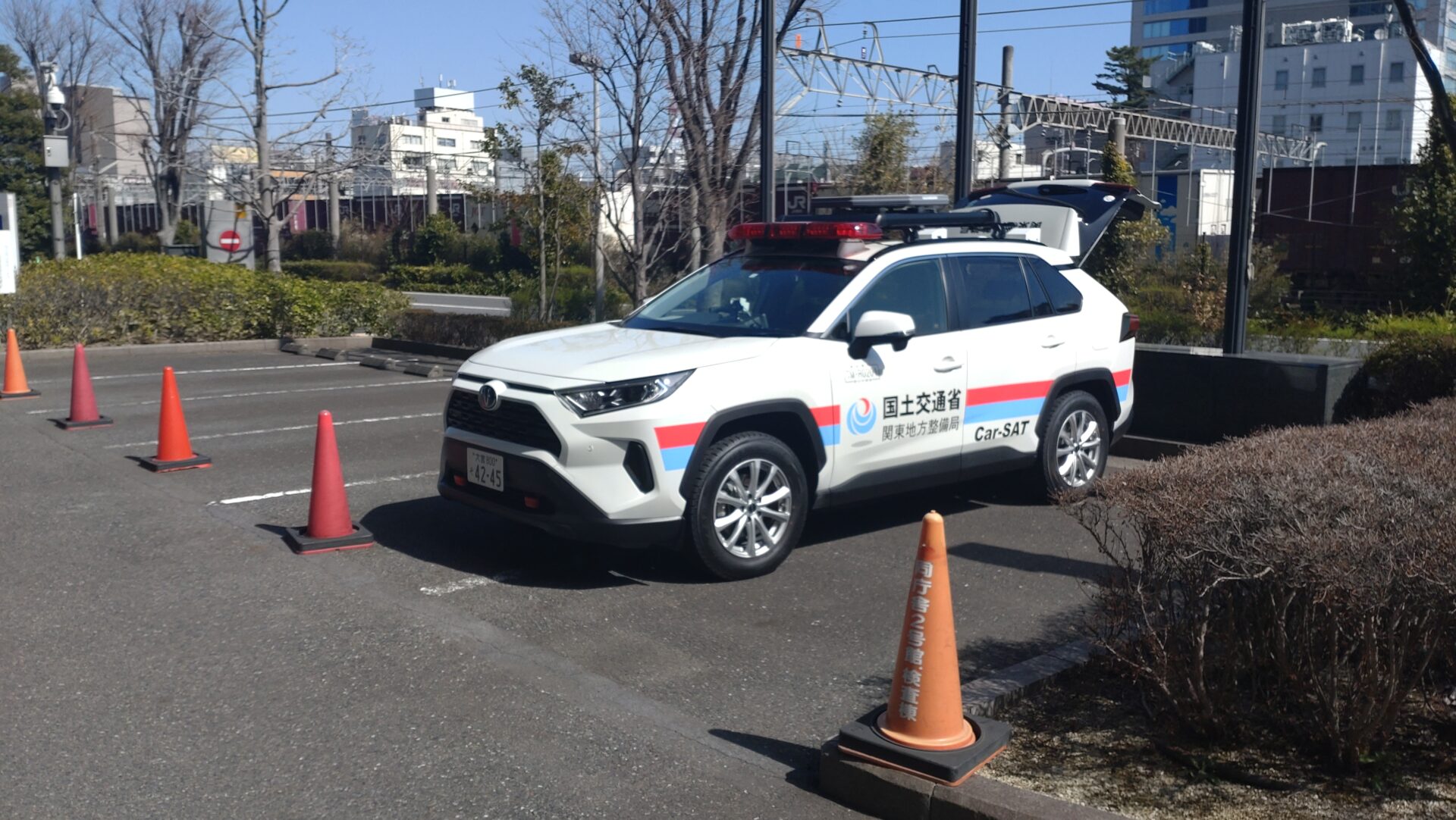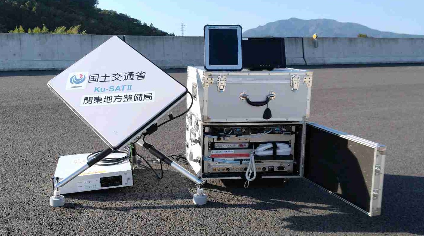 車から撮影した映像や位置情報を直接衛星へ送信。通信設備のない山間部などからでも全国の拠点にリアルタイムで伝送でき、災害現場の初動対応を支援します。