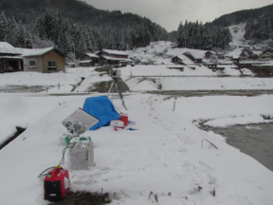 土砂流出現場(輪島市市ノ瀬)Ku-SAT設営状況