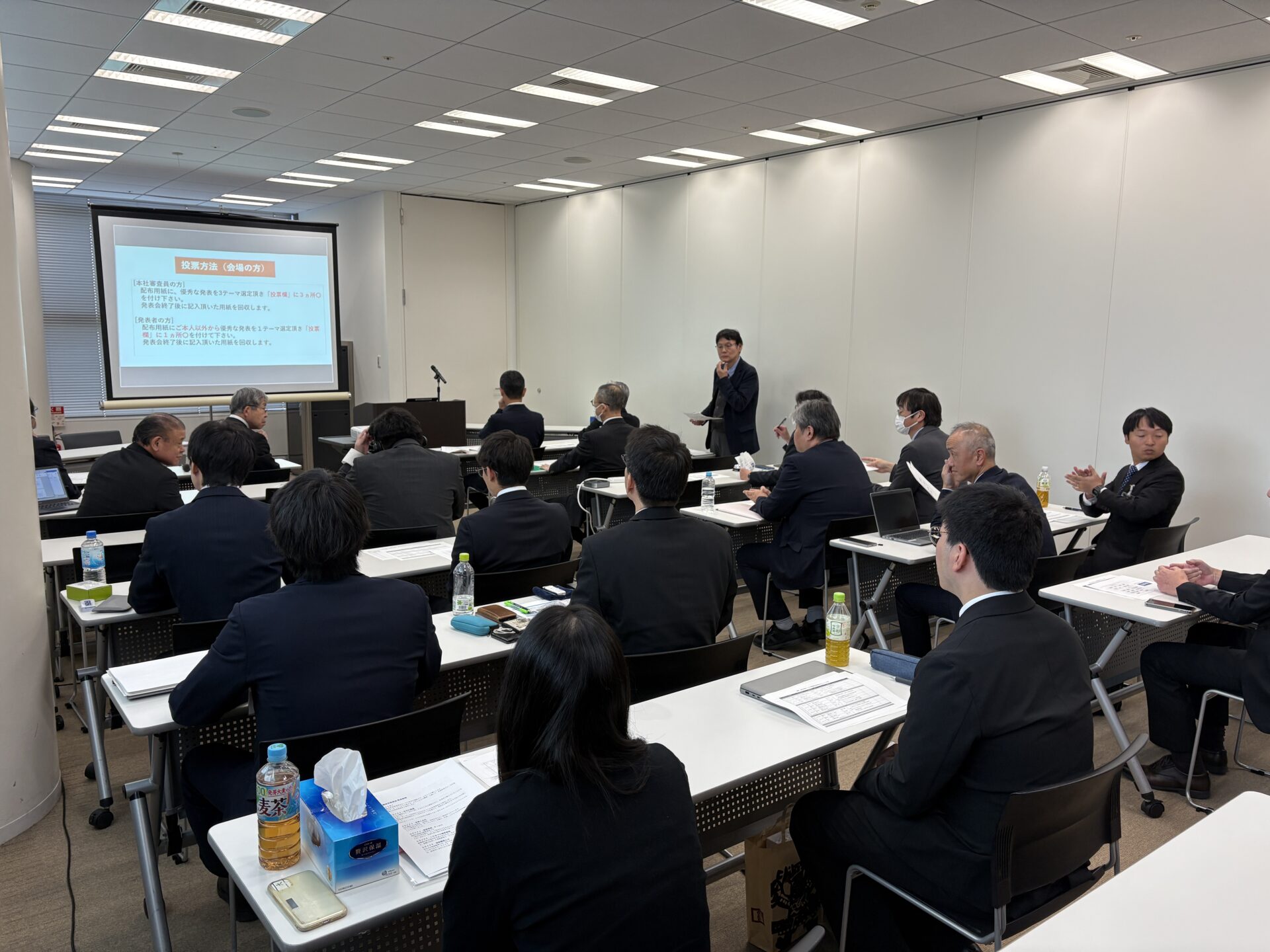 2025年11月19日(水)本社入居ビル会議室にて業務研究発表会を開催しました。各支社店代表者(11名)より「監視業務・点検業務」「業務効率化」「管理業務」の3つのカテゴリー別に技術、営業・総務部門における業務効率化・高度化への取り組み内容の発表を行ってもらいました。他支社店でも取り入れることが可能な発表などもあり大変有意義な時間となりました。発表会後に引き続いて開催した意見交換会では、普段あまり接点のない他支社店の従業員との話に花が咲きました。会場審査員及びTeams参加者による投票による最優秀賞.優秀賞の発表もあり、多いに盛り上がりました。